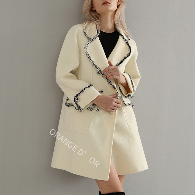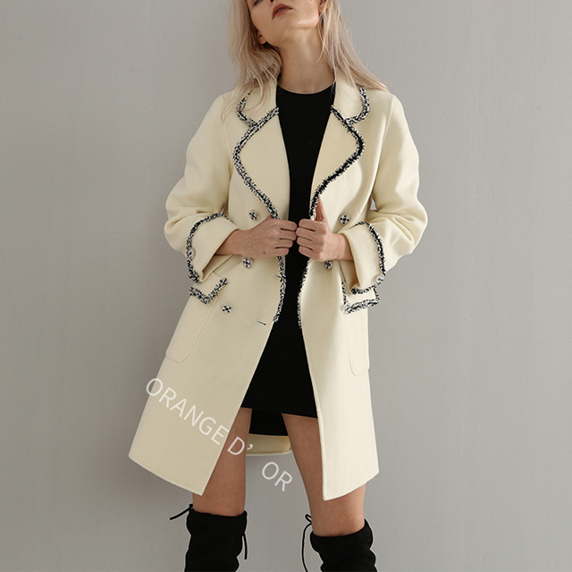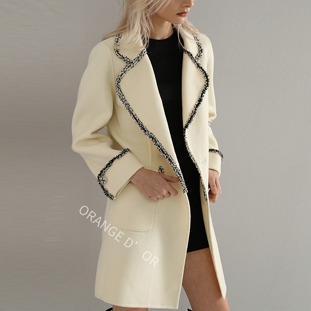 展品關(guān)鍵詞長款、大衣、外套、翻領(lǐng)、雙排扣