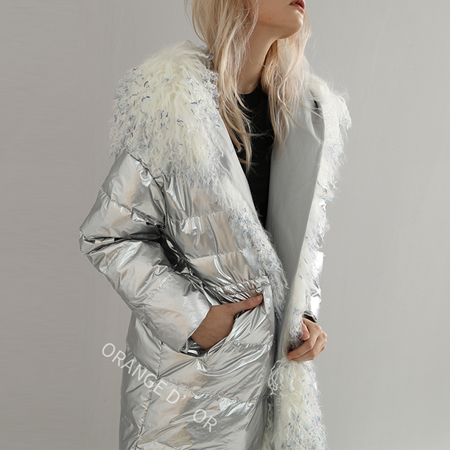 中長款樣式,毛領(lǐng)設(shè)計,獨特亮面材質(zhì),個性時尚,適合歐美及南美時裝公司。