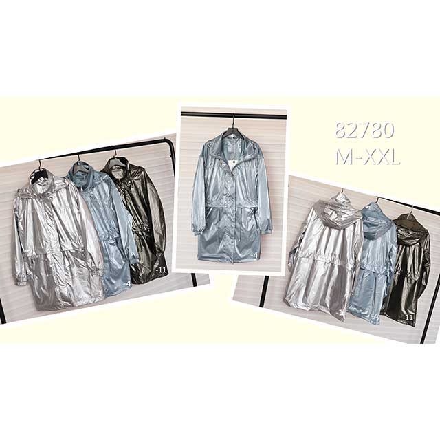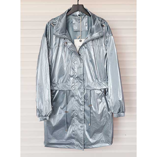 中長款樣式,連帽款,抽繩收腰設計拉長身材比例,塑造腰部曲線,獨特亮面材質,個性時尚,適合歐美及南美時裝公司。